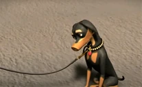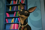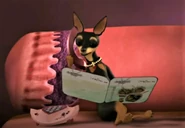 Taco is owned by Mrs Winters, who seems to be aware of his ability to talk as she makes him wear a muzzle.